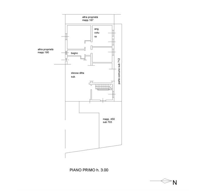 Appartamento al piano primo con accesso dal ballatoio comune composto da soggiorno con angolo cottura, due camere, bagno con finestra, disimpegno e ripostiglio.